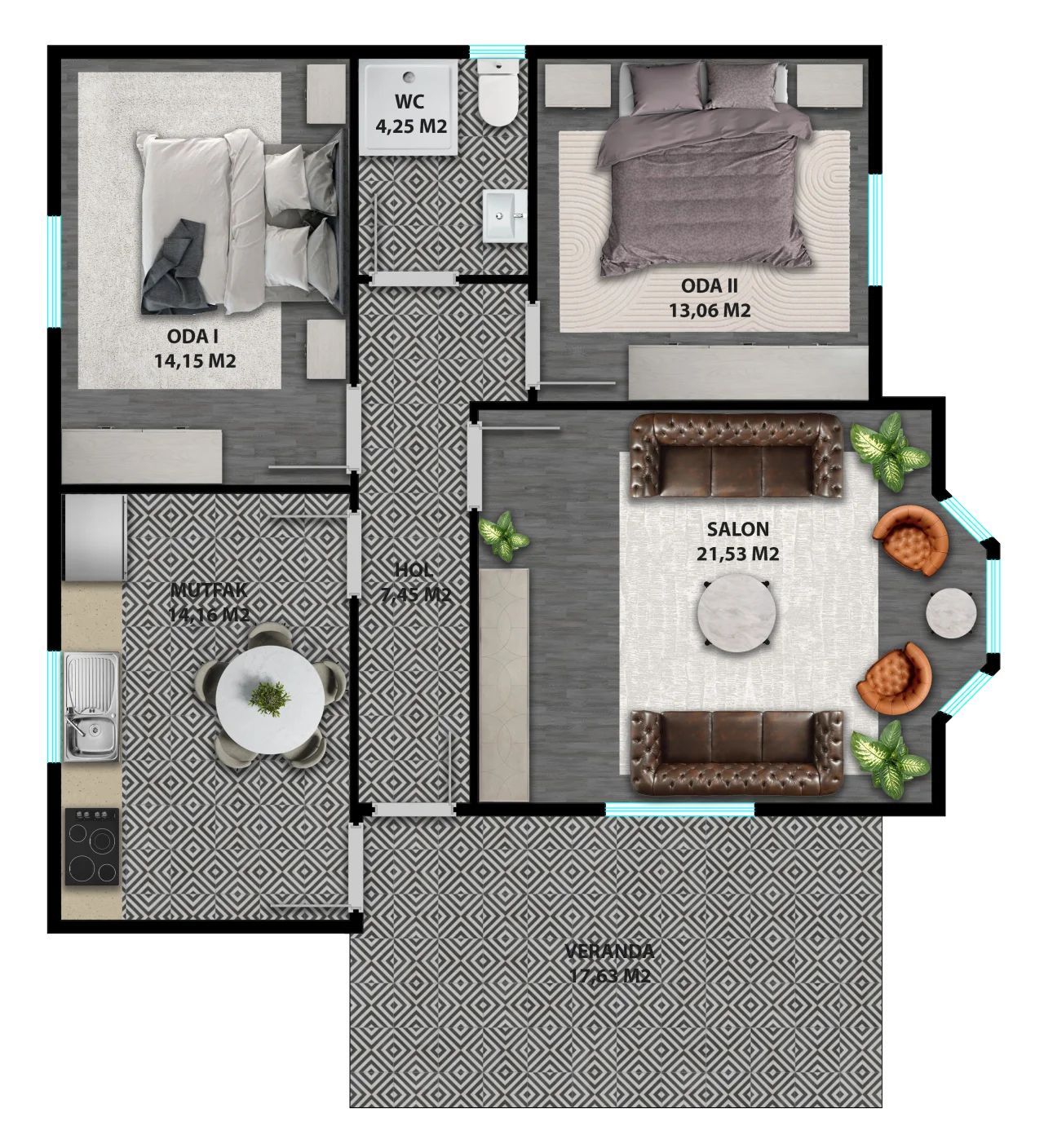 Duvar Sistemi:BETOPAN Toplam duvar kalınlığı: 30cm